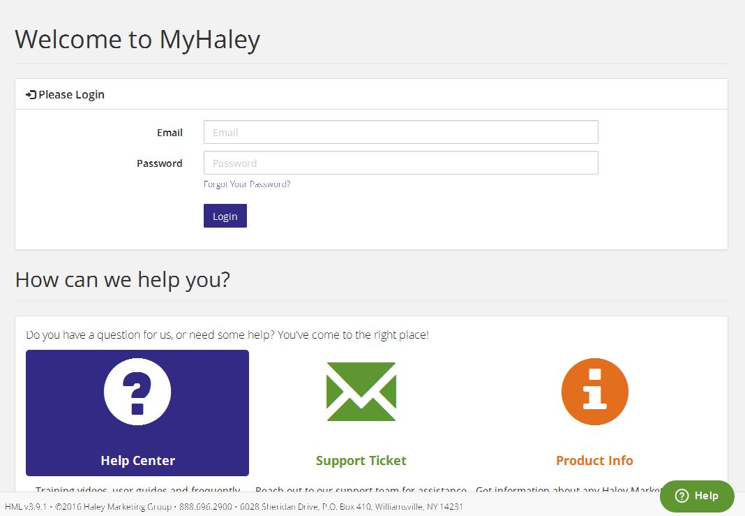 - Go to http://myhaley.haleymarketing.com.