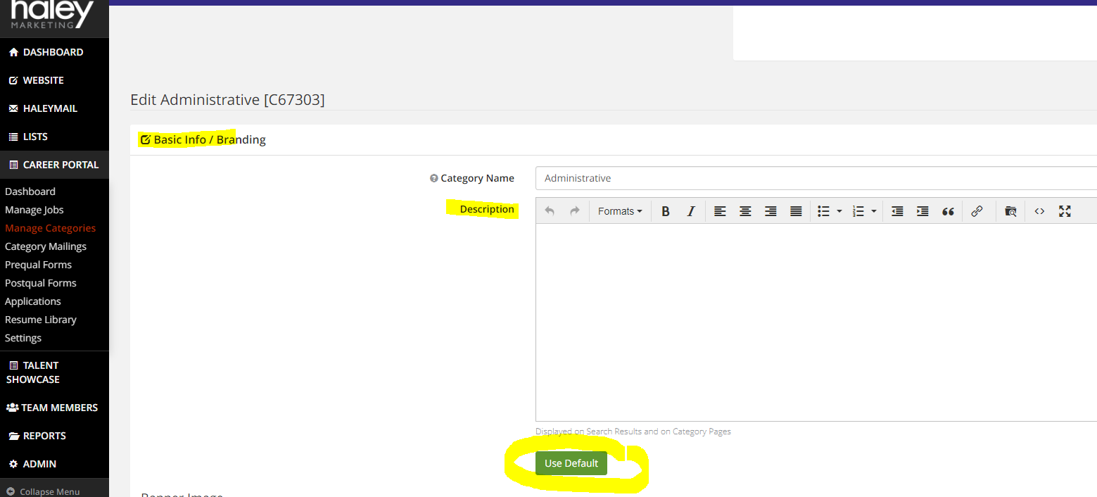 The default verbiage is AI generated. If you don't like the default content being displayed, you can edit it to whatever you like in MyHaley under Career Portal → Manage Categories → pick a category and update the description. If you make updates, you can always switch back to the default description by clicking the Use Default button.